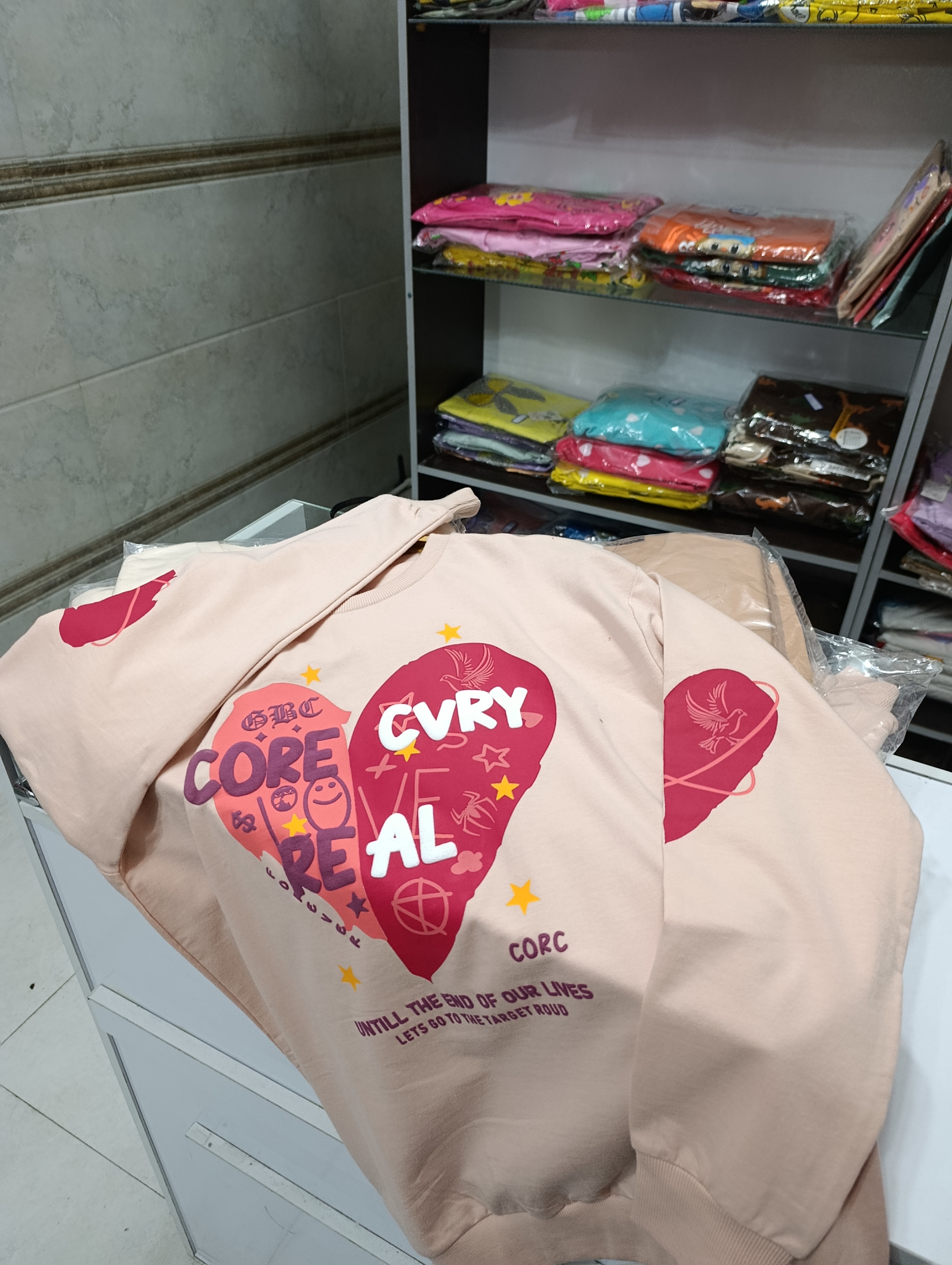 بلوزآستین بلندطرح قلب پفکی